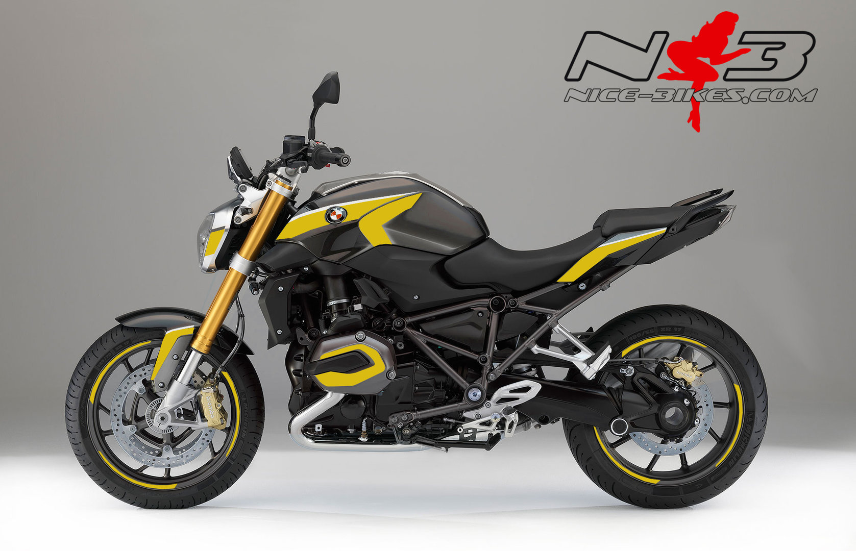 BMW R1200R Edition gelb auf grauer Maschine