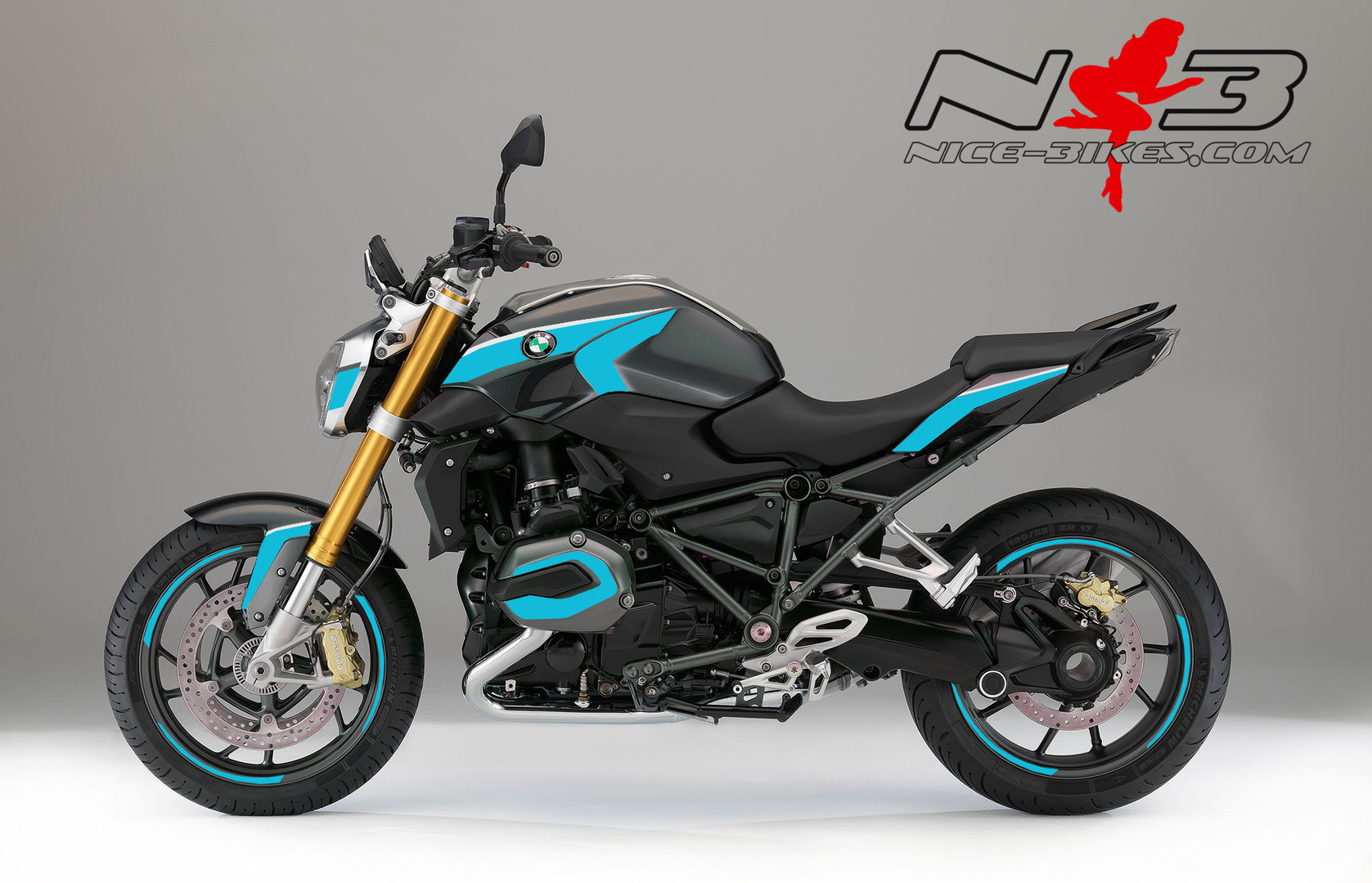 BMW R1200R Edition hellblau auf grauer Maschine