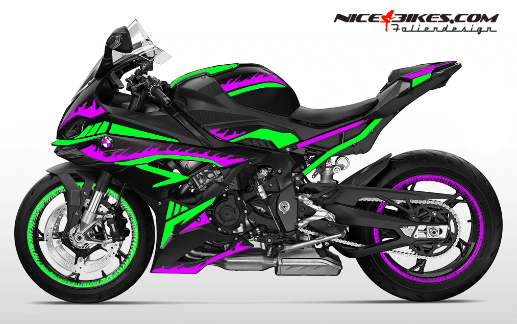 Foliendesign BMW S1000RR (Bj. 2023-24) Inferno Manga Violett/Wasabi Green