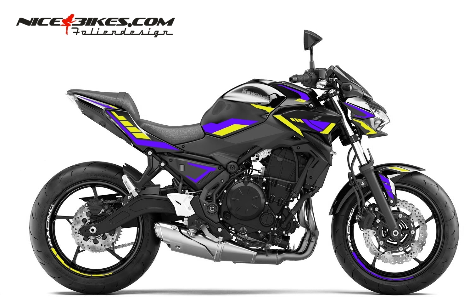 Foliendesign Kawasaki Z650 Manga Violett – Hornet Yellow