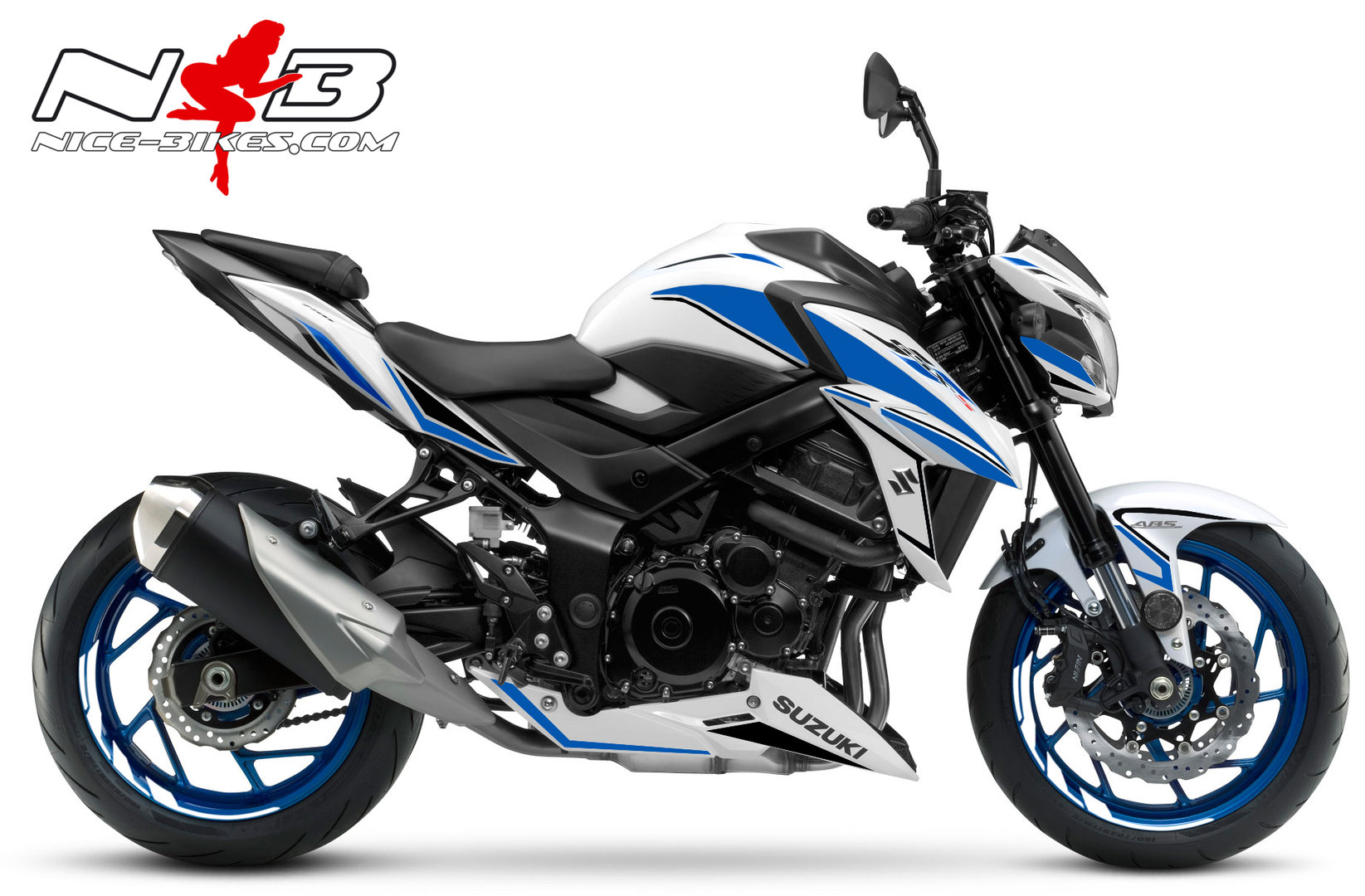 GSX-S750 blau auf weißer Maschine