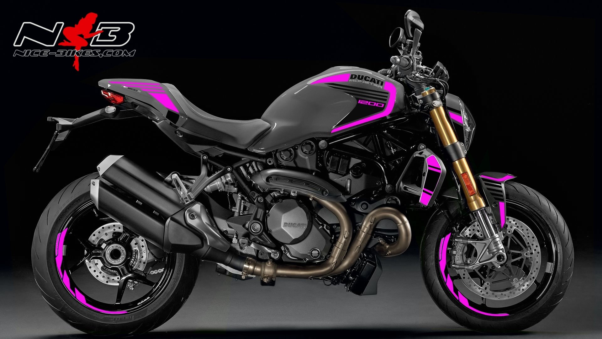 Monster 1200 pink auf grauer Maschine
