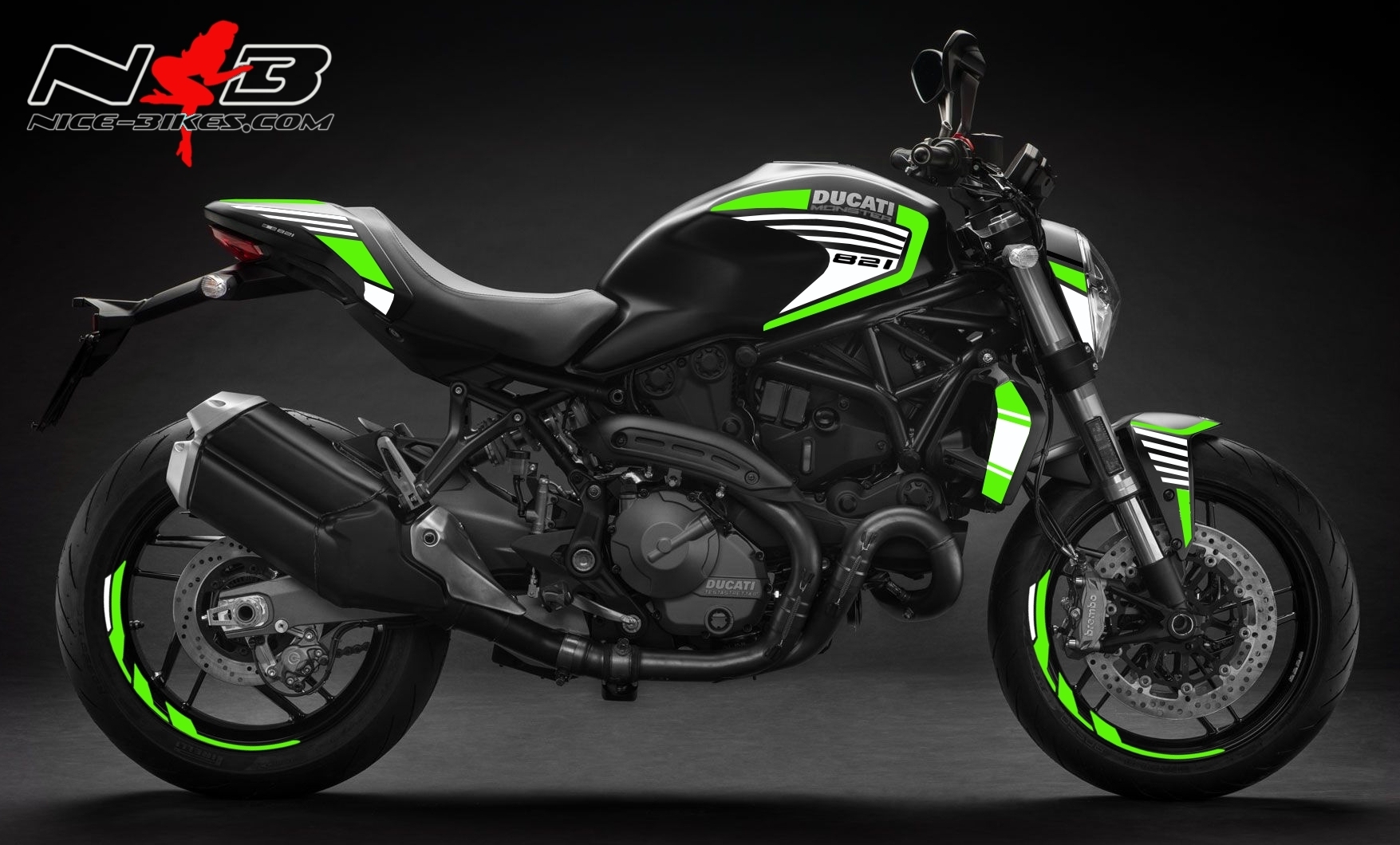 Monster 821 limegreen auf schwarzer Maschine