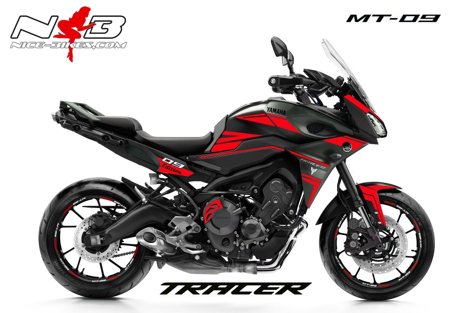 MT09 Tracer rot auf schwarzer Maschine
