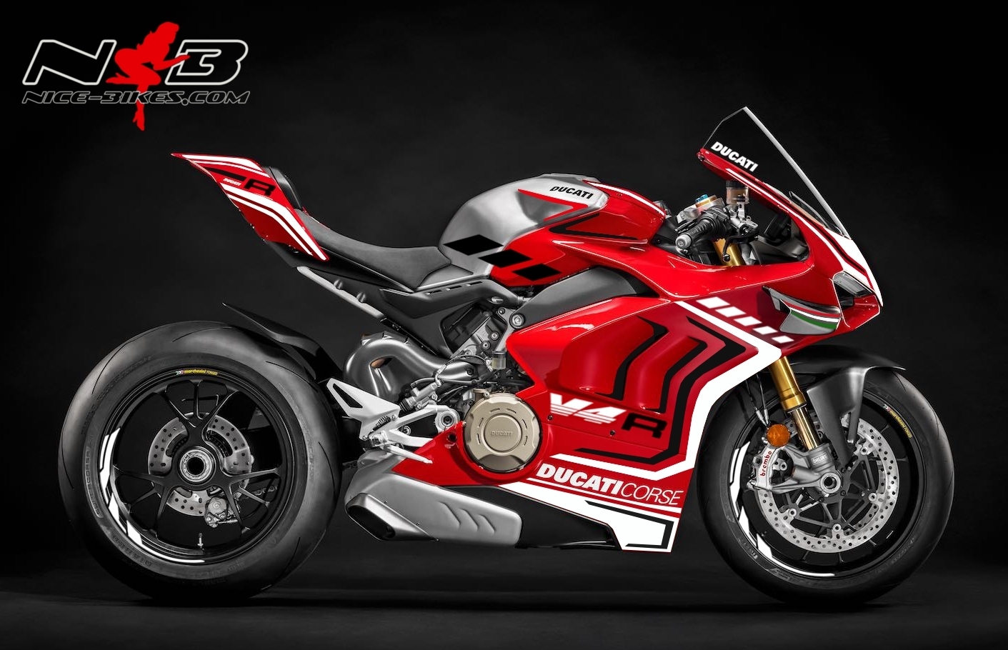 Panigale V4R weiß auf roter Mashine