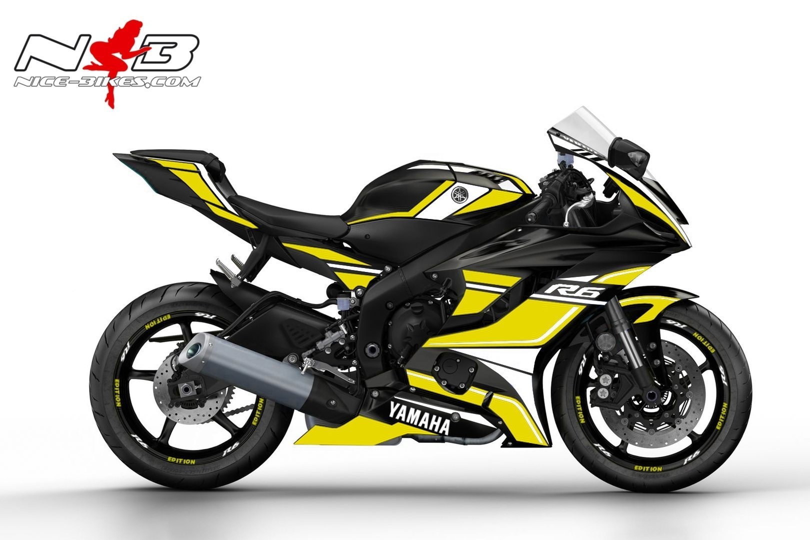 R6 Race Foliendekor gelb auf schwarzer Maschine