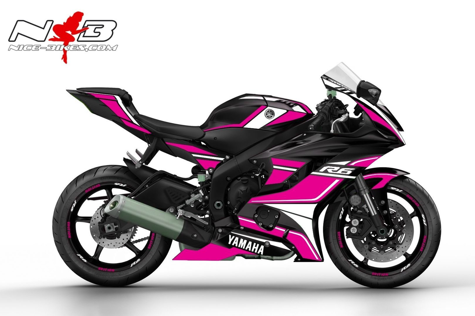 R6 Race Foliendekor pink auf schwarzer Maschine