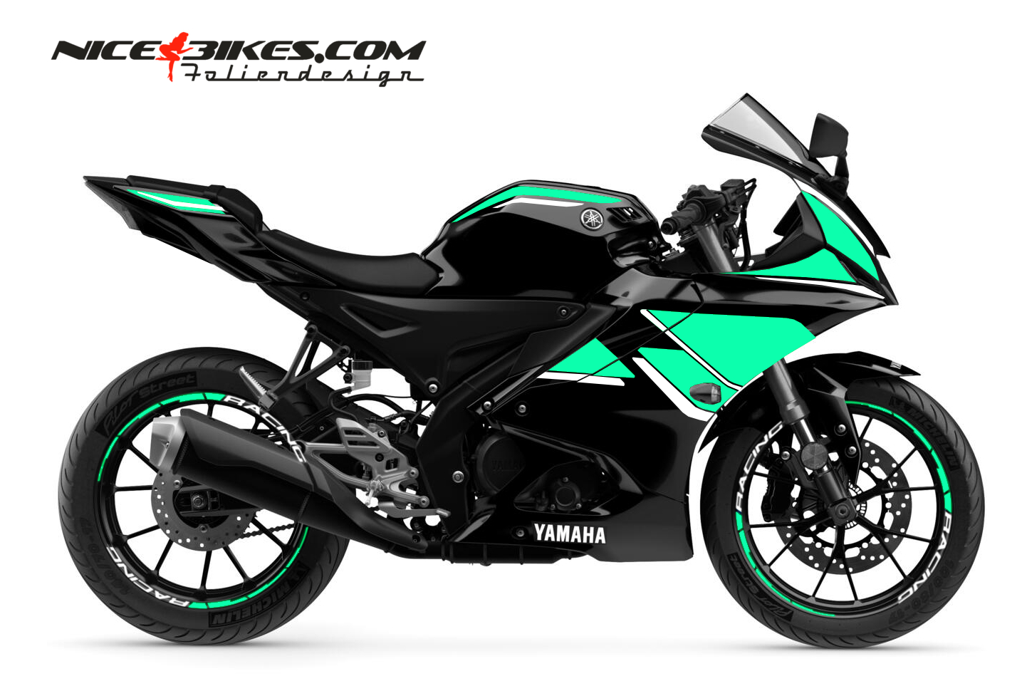 Folien Kit wie abgebildet inkl. abgebildetem Felgendesign.