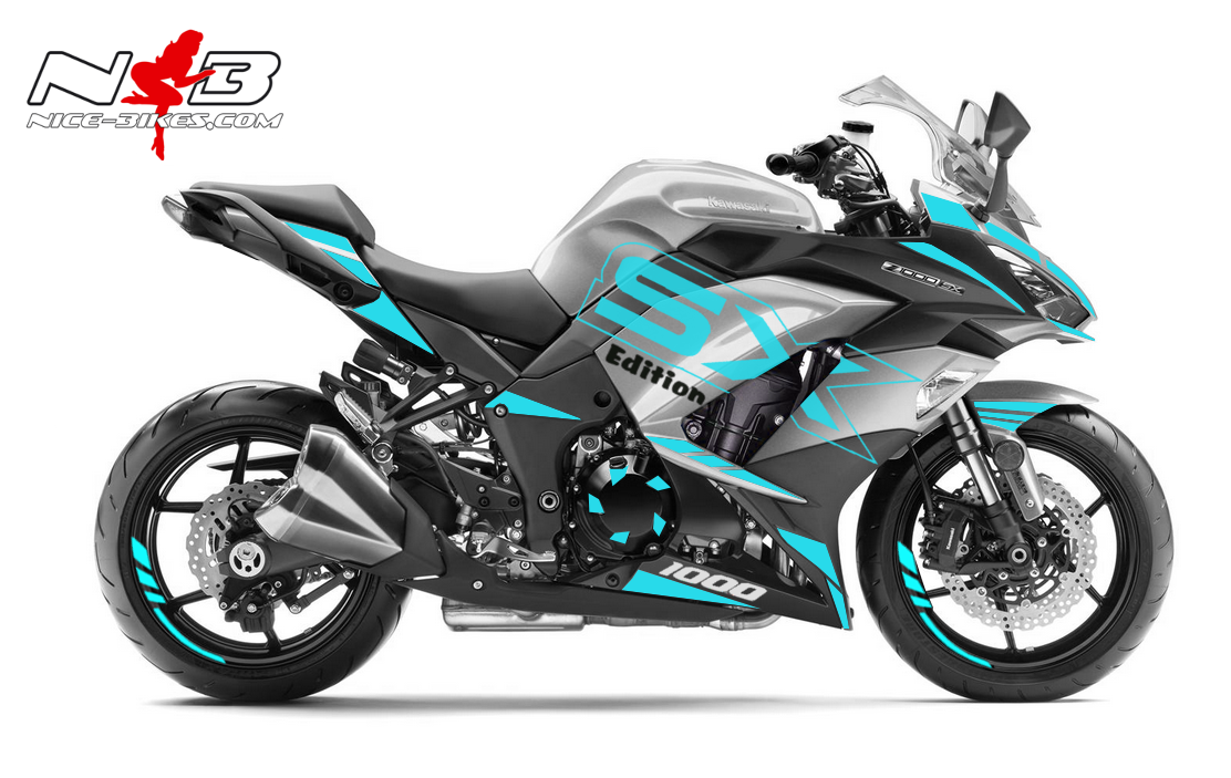 Z1000SX Dekor hellblau auf silbernen Maschine